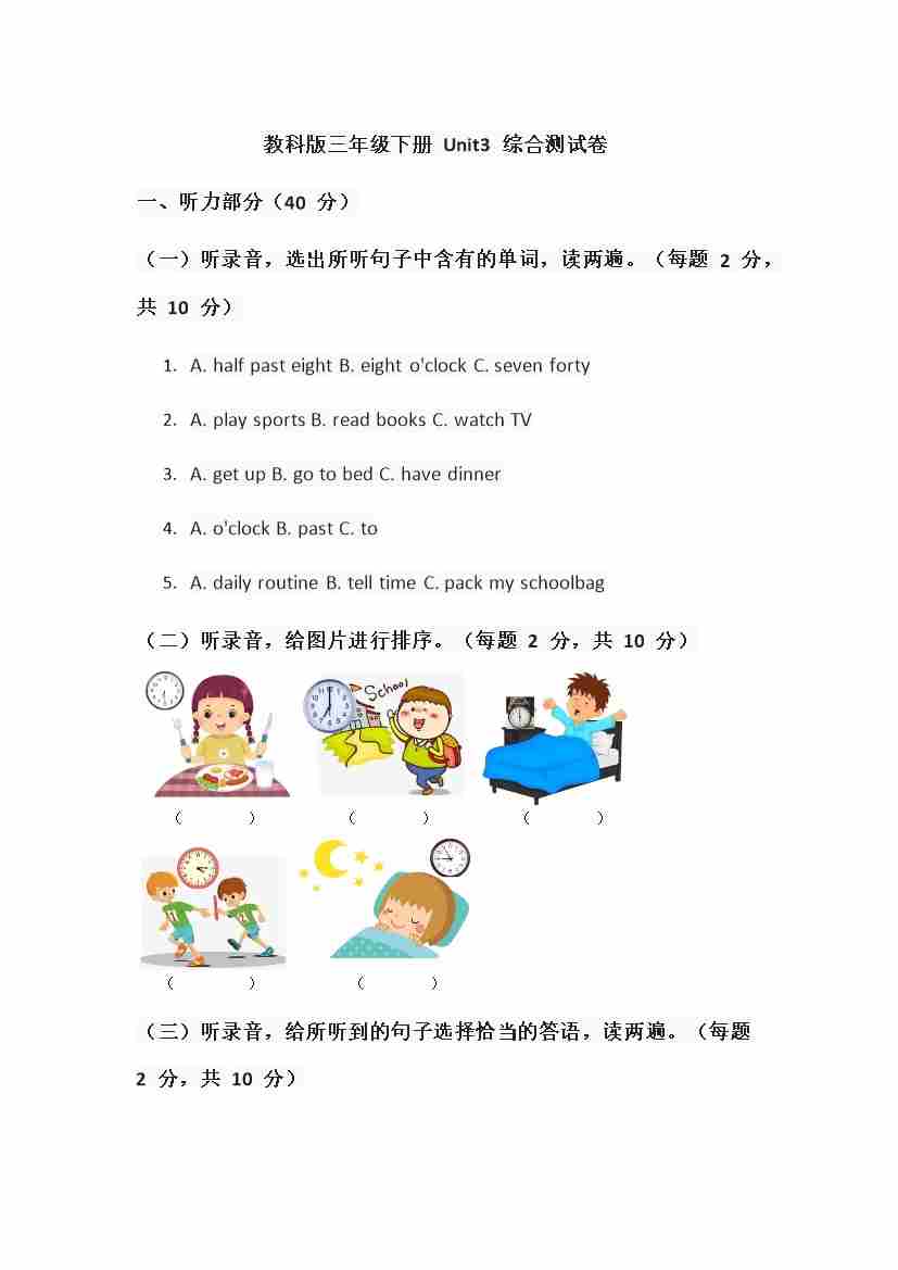 Unit 3 Plan My Day(单元测试)- 级教科版(2024)英语三年级下册