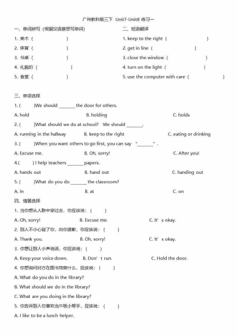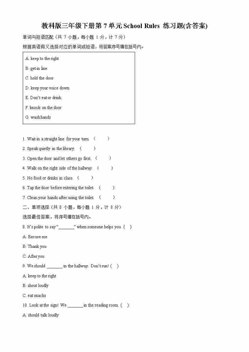 Unit 8 A Polite Way (单元测试)-2024-2025学年教科版(2024)英语三年级下册