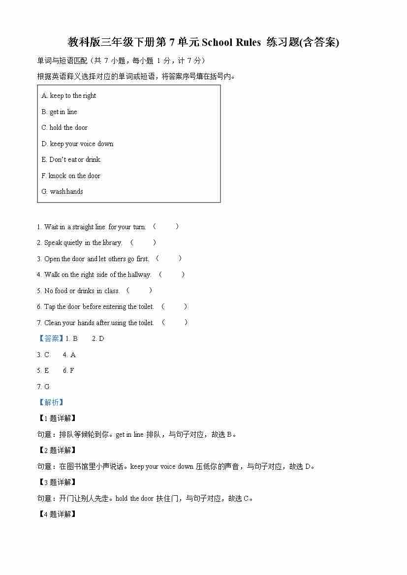 教科版三年级下册Unit 6 I’m on Duty测试卷(含听力音频,听力文本和答案)