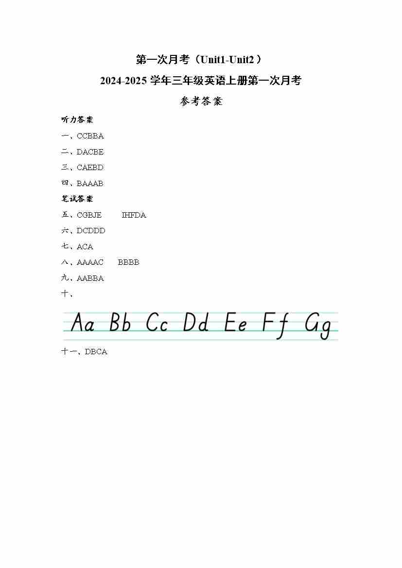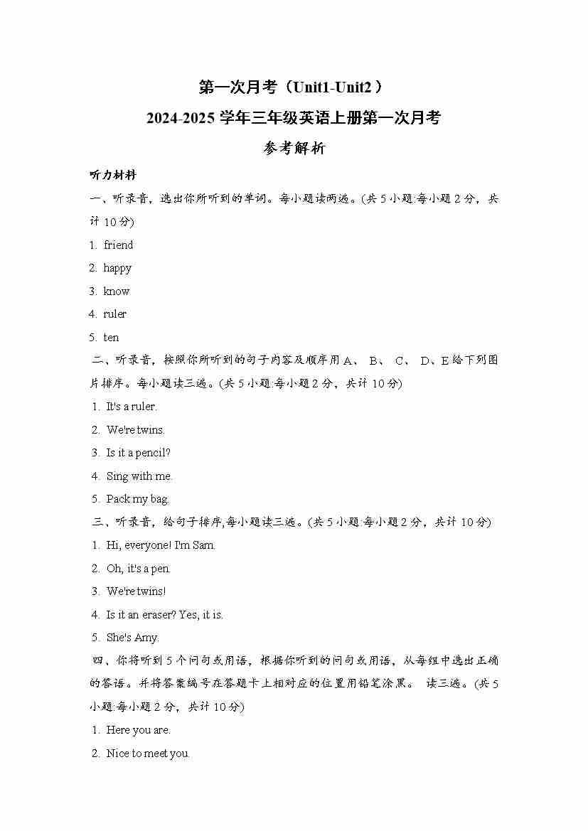 第一次月考(Unit1-Unit2) (参考答案)