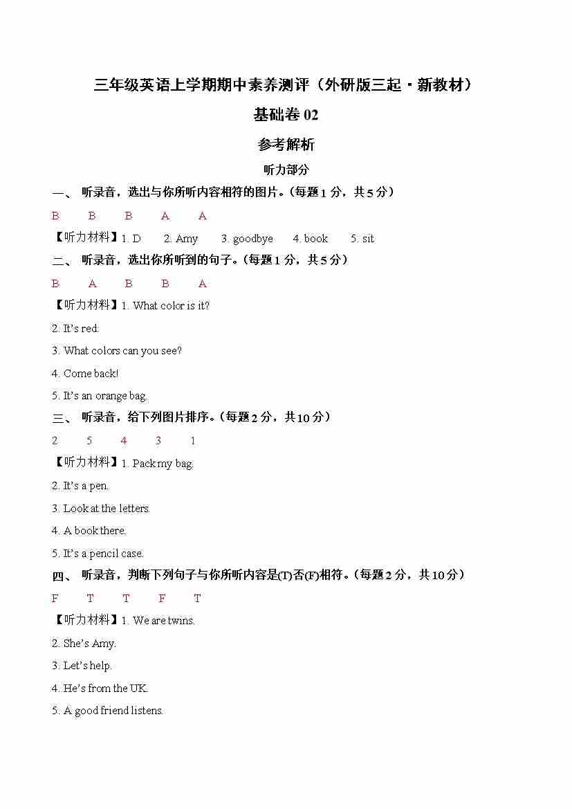 三上新外研英语(基础卷02)(参考答案)
