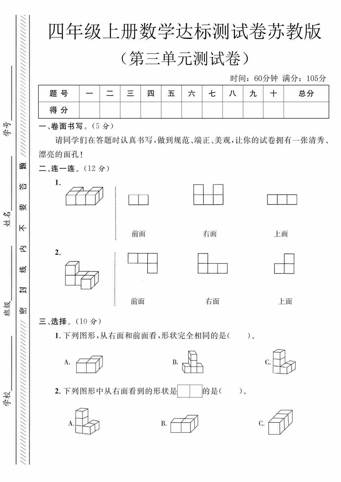 四上苏教版数学【第三单元测试卷三】