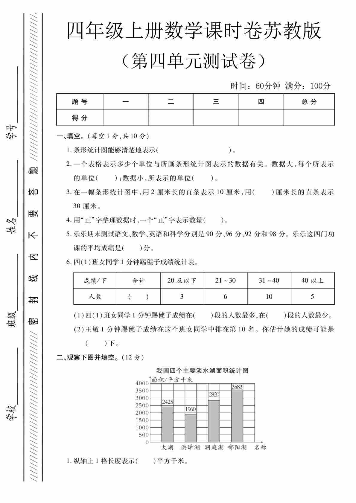 四上苏教版数学【第一次月考测试卷二】