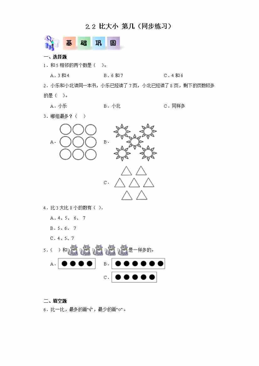 【同步分层作业】人教数学一上-2.2 比大小 第几