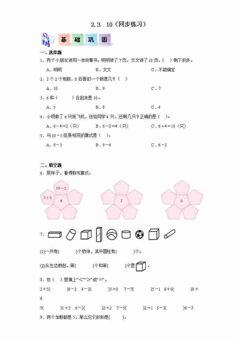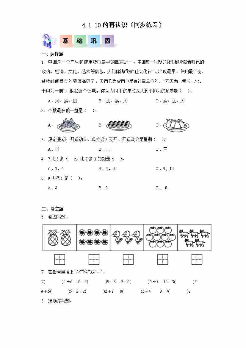 【同步分层作业】人教数学一上-4.1 10的再认识