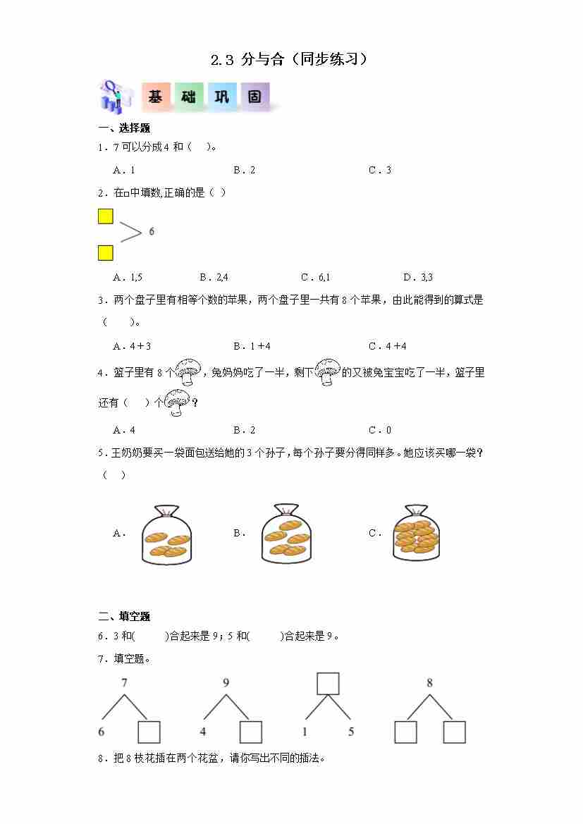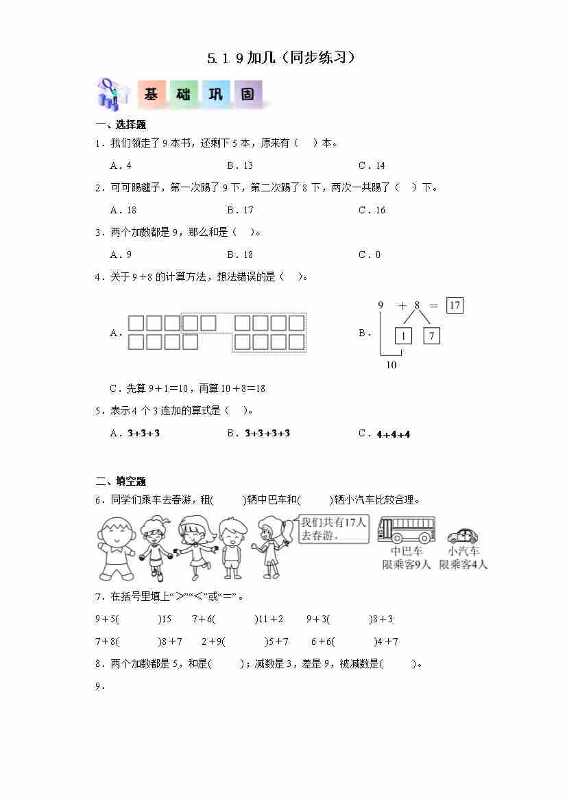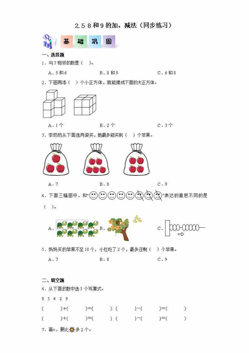【同步分层作业】人教数学一上-2.5 8和9的加、减法