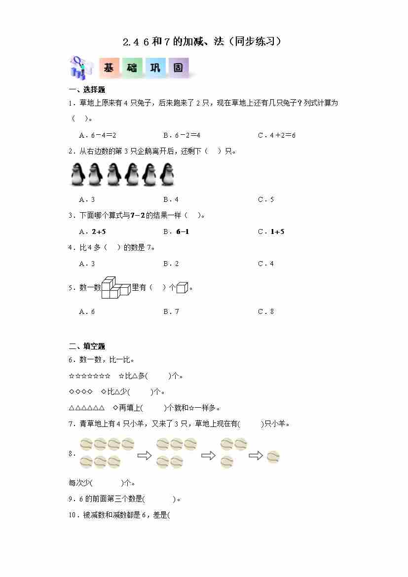 【同步分层作业】人教数学一上-2.4 6和7的加减、法