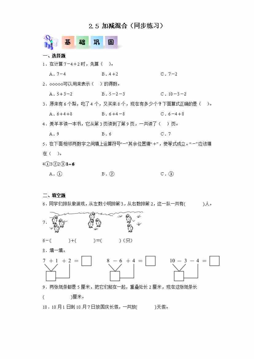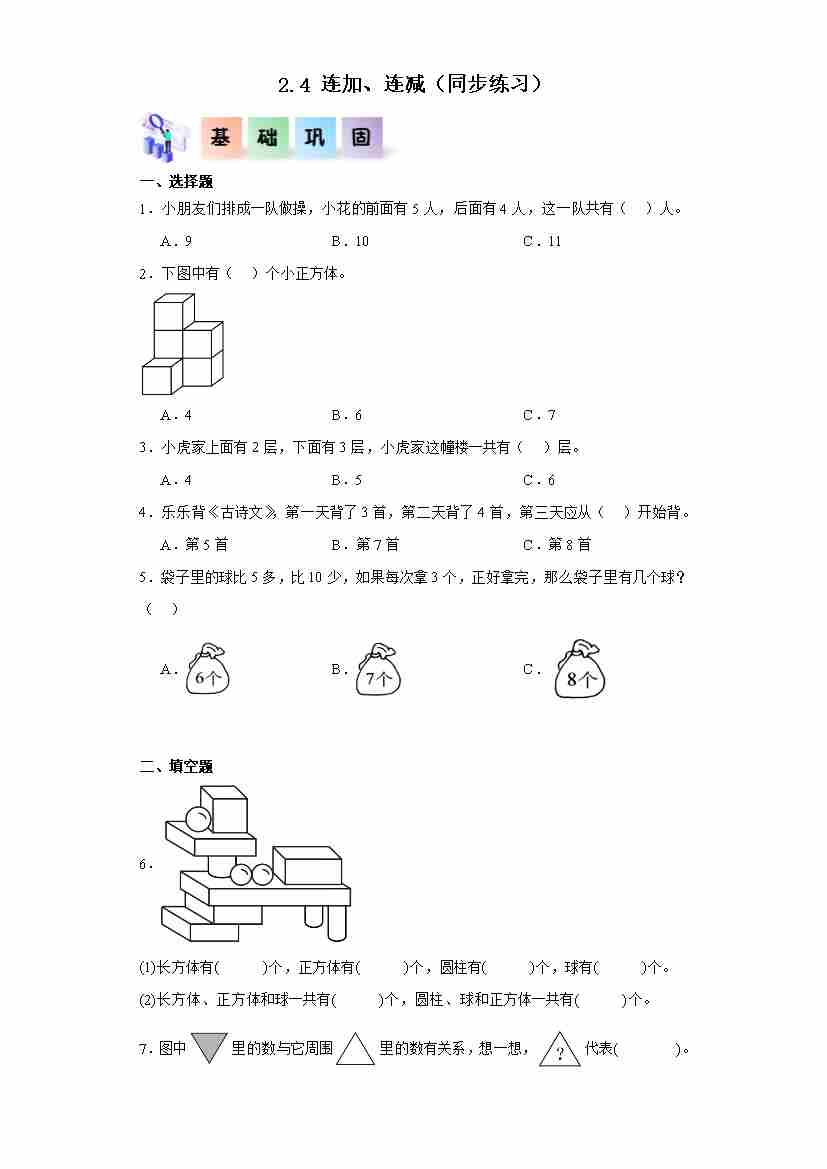 【同步分层作业】人教数学一上-2.4 连加、连减