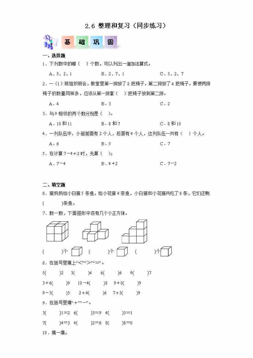 【同步分层作业】人教数学一上-2.6 整理和复习
