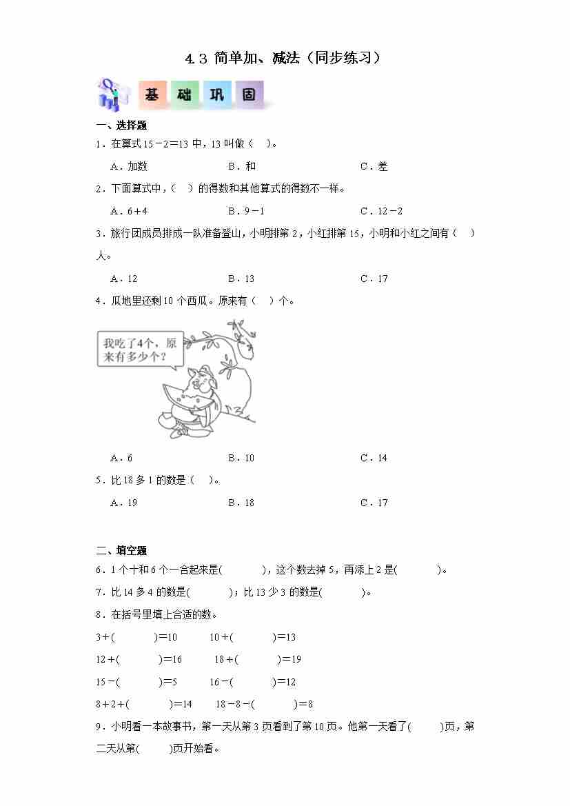 【同步分层作业】人教数学一上-4.3 简单加、减法