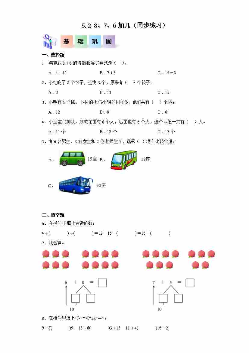 【同步分层作业】人教数学一上-5.2 8、7、6加几