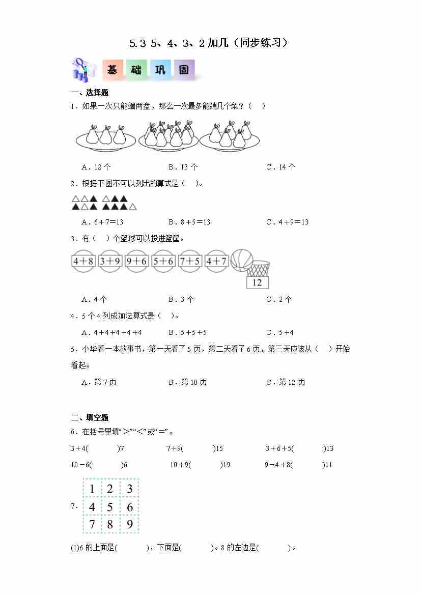 【同步分层作业】人教数学一上-5.3 5、4、3、2加几