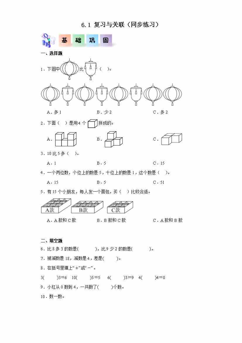 【同步分层作业】人教数学一上-6.1 复习与关联