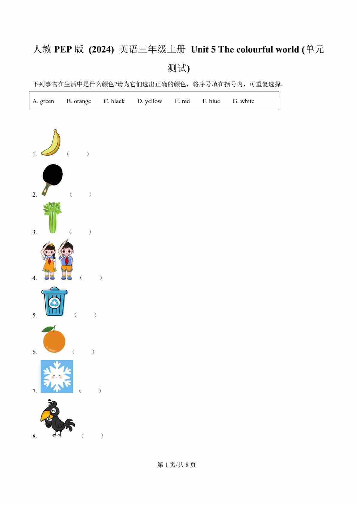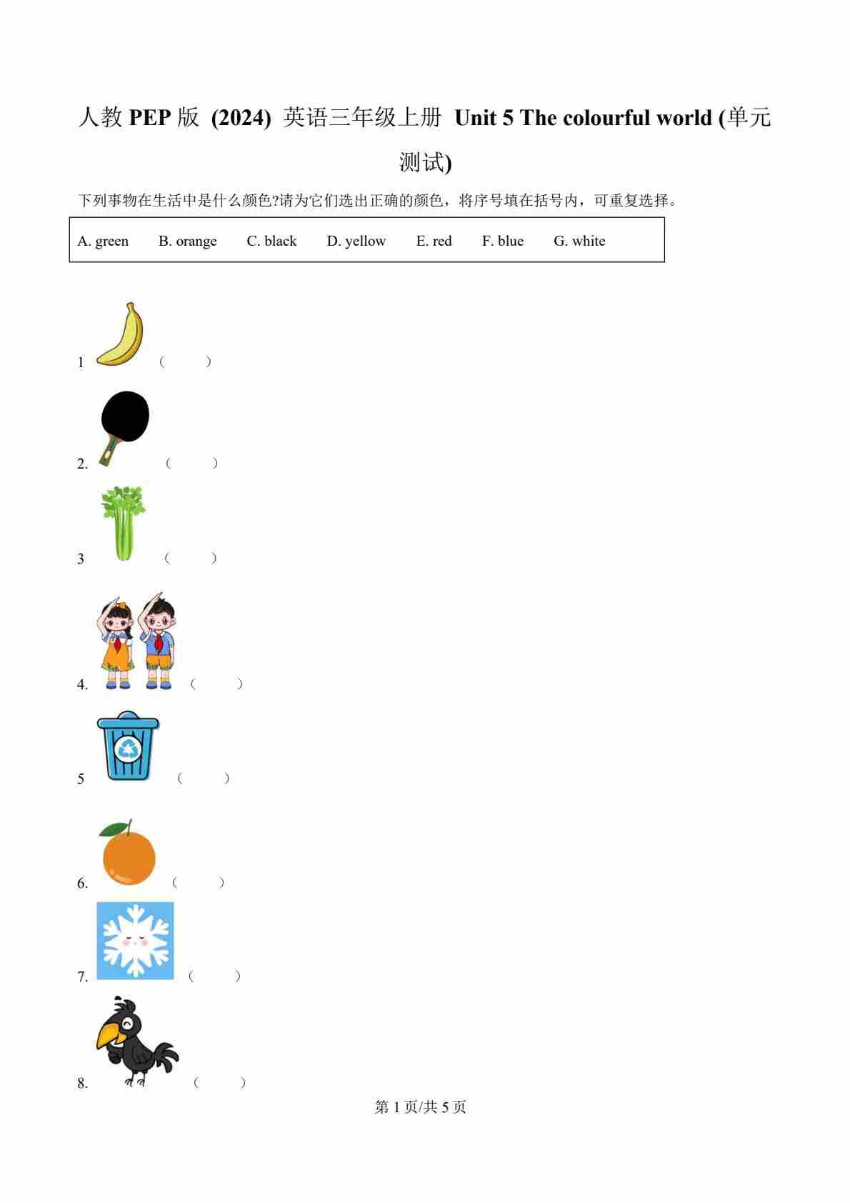 Unit 5 The colourful world -2025-2026学年PEP版小学英语三年级上册(原卷版)