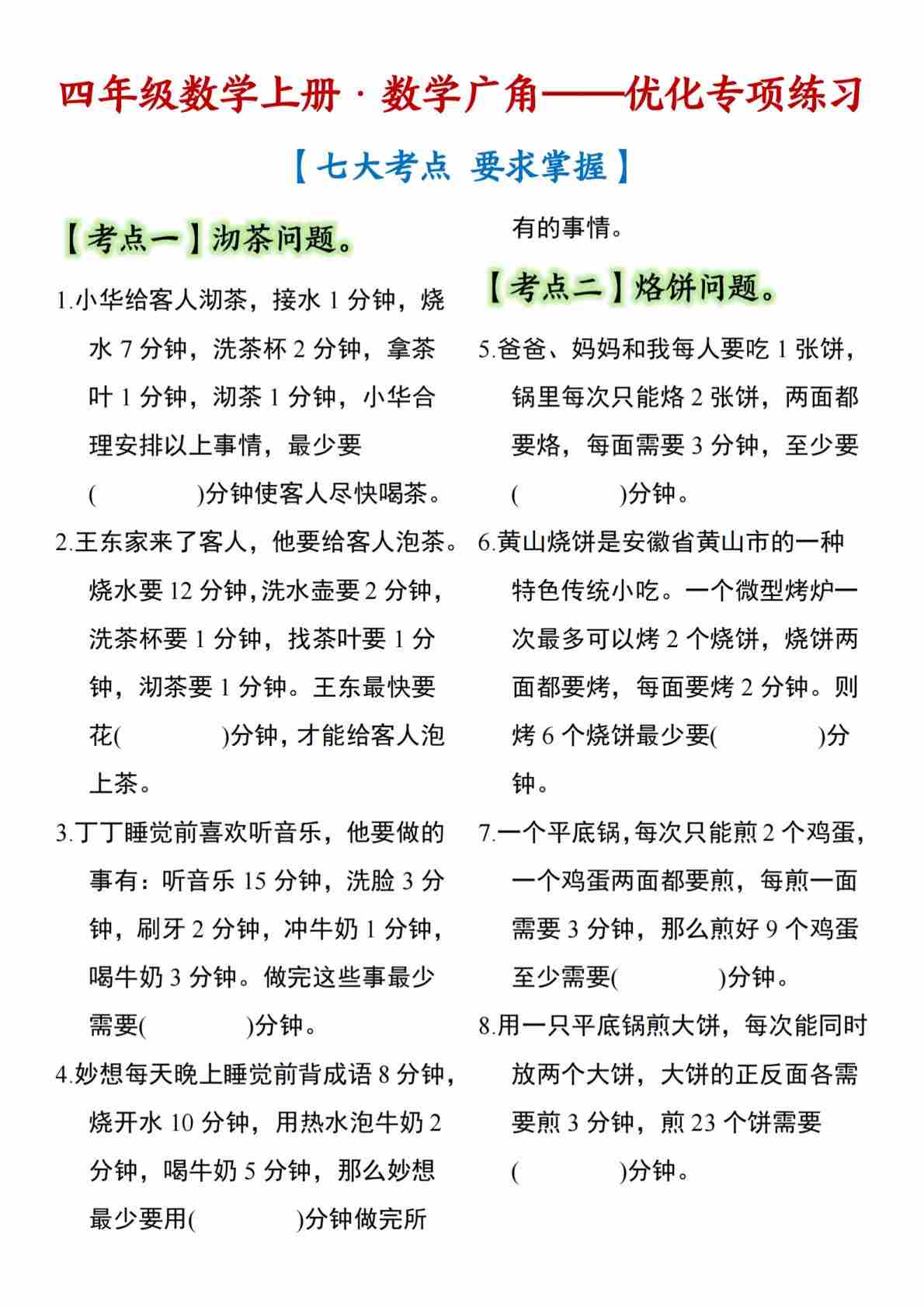 四上数学(北师大版)每日晚练10分钟学习单(无答案)