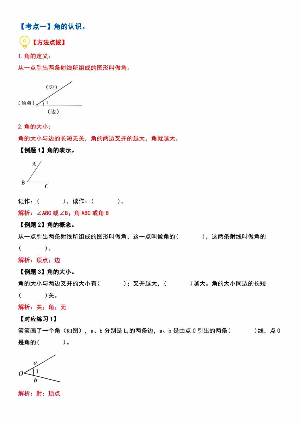 第三单元 元角的度数【十二大考点】答案解析