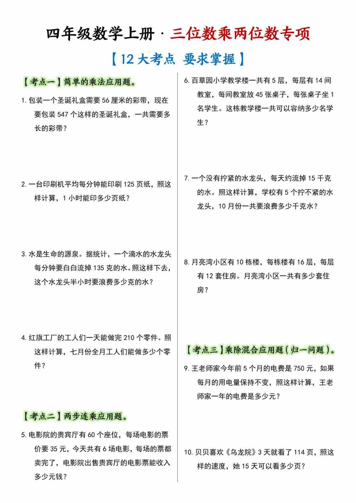 第四单元 三位数乘两位数【十二大考点】1