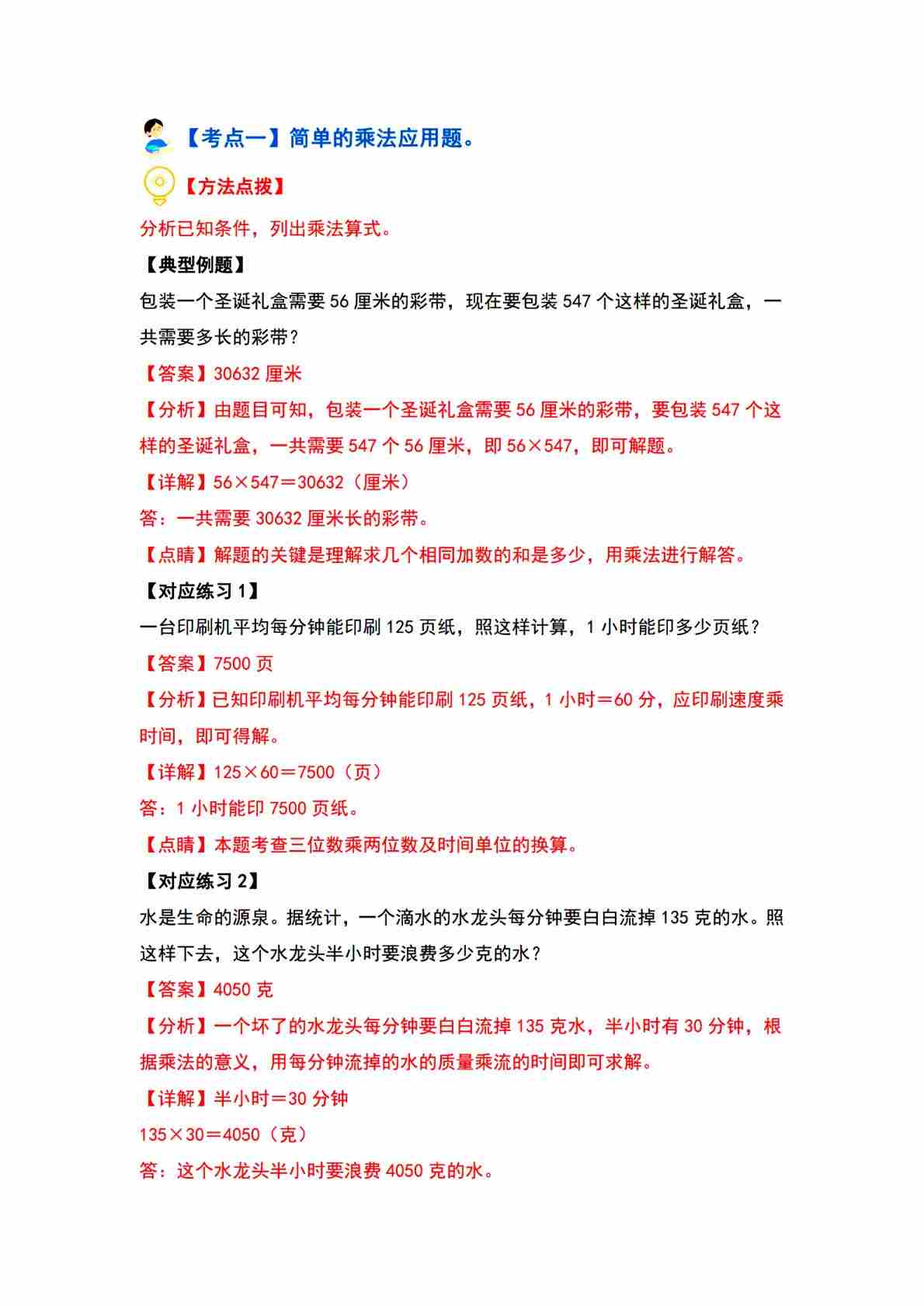 第四单元 三位数乘两位数【十二大考点】答案解析