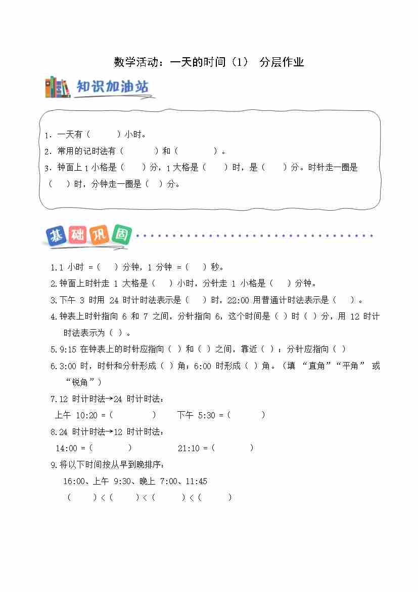 数学活动 一天的时间(1) (分层作业)