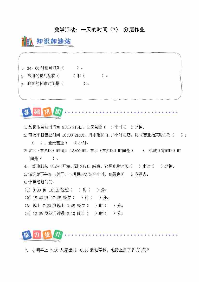 数学活动 一天的时间(2) (分层作业)