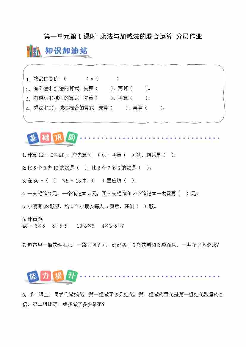 第一单元第1课时 乘法与加减法的混合运算(分层作业)