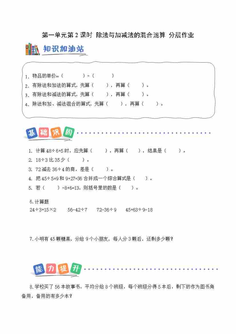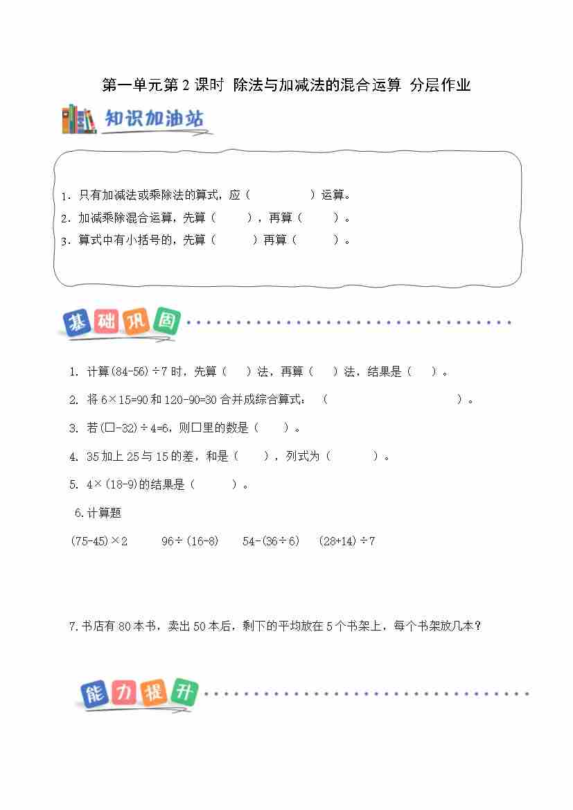 第一单元第2课时 除法与加法减法的混合运算(分层作业)