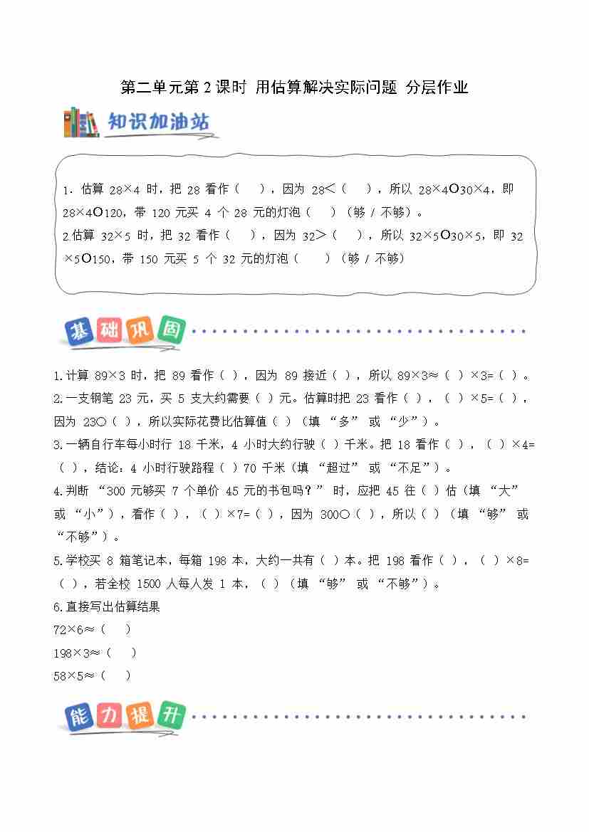 第二单元 第2课时 用估算解决实际问题(分层作业)