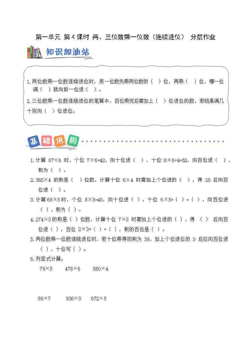 第二单元 第4课时 两、三位数乘一位数(连续进位)(分层作业)