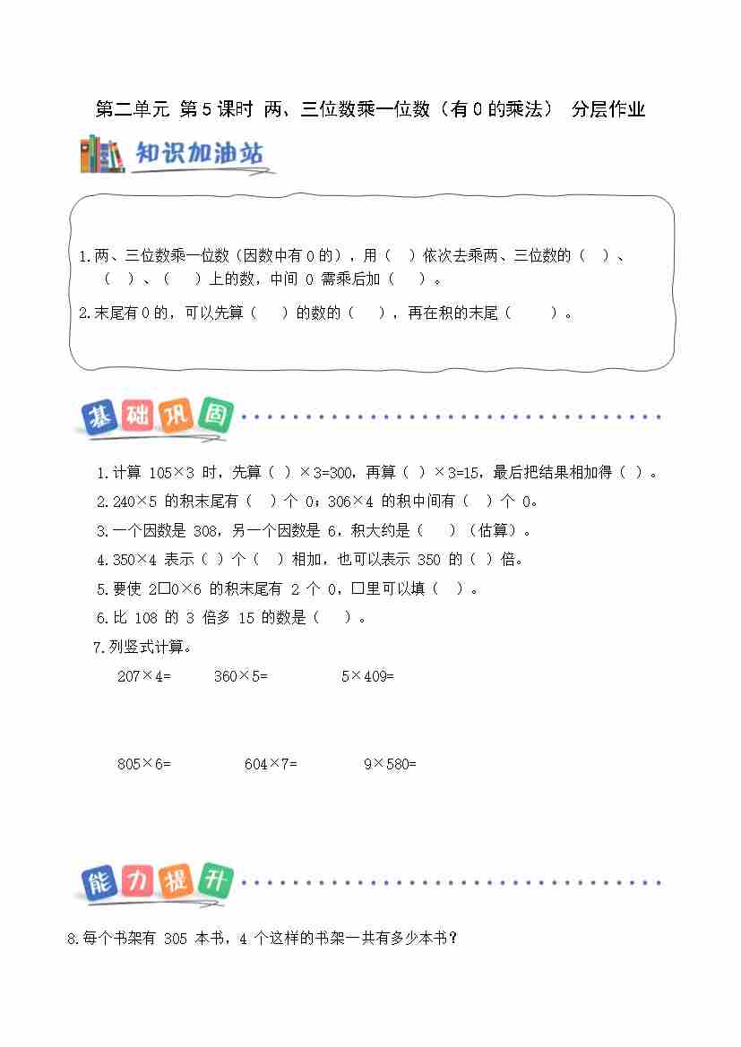 第二单元 第5课时 两、三位数乘一位数(有0的乘法)(分层作业)