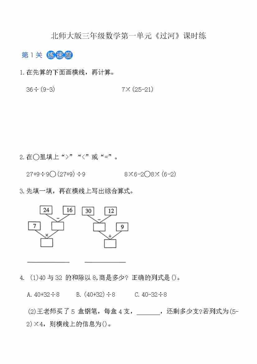 北师大版三年级上数学第1单元《过河》课时练(含答案)