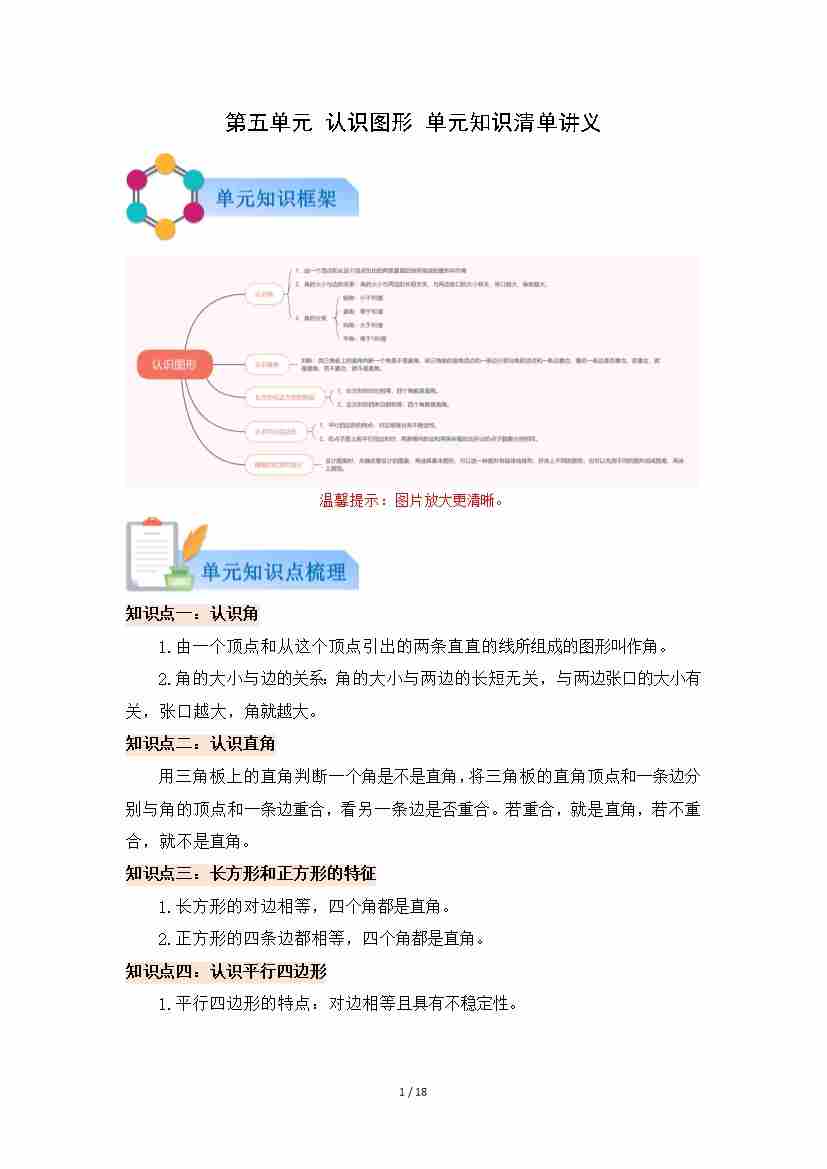 第五单元 认识图形(知识清单)数学北师大版三年级上册(解析版)