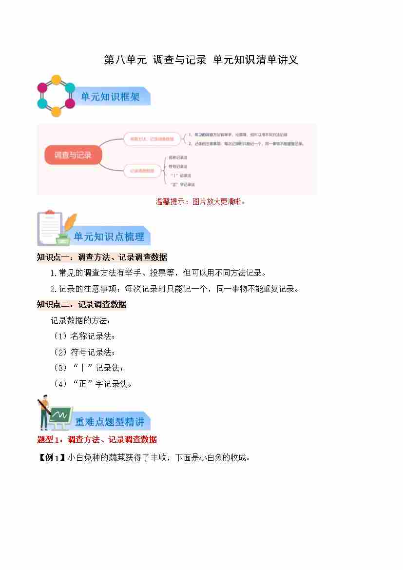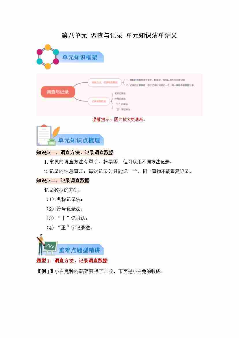 第八单元 调查与记录(知识清单)数学北师大版三年级上册(原卷版)