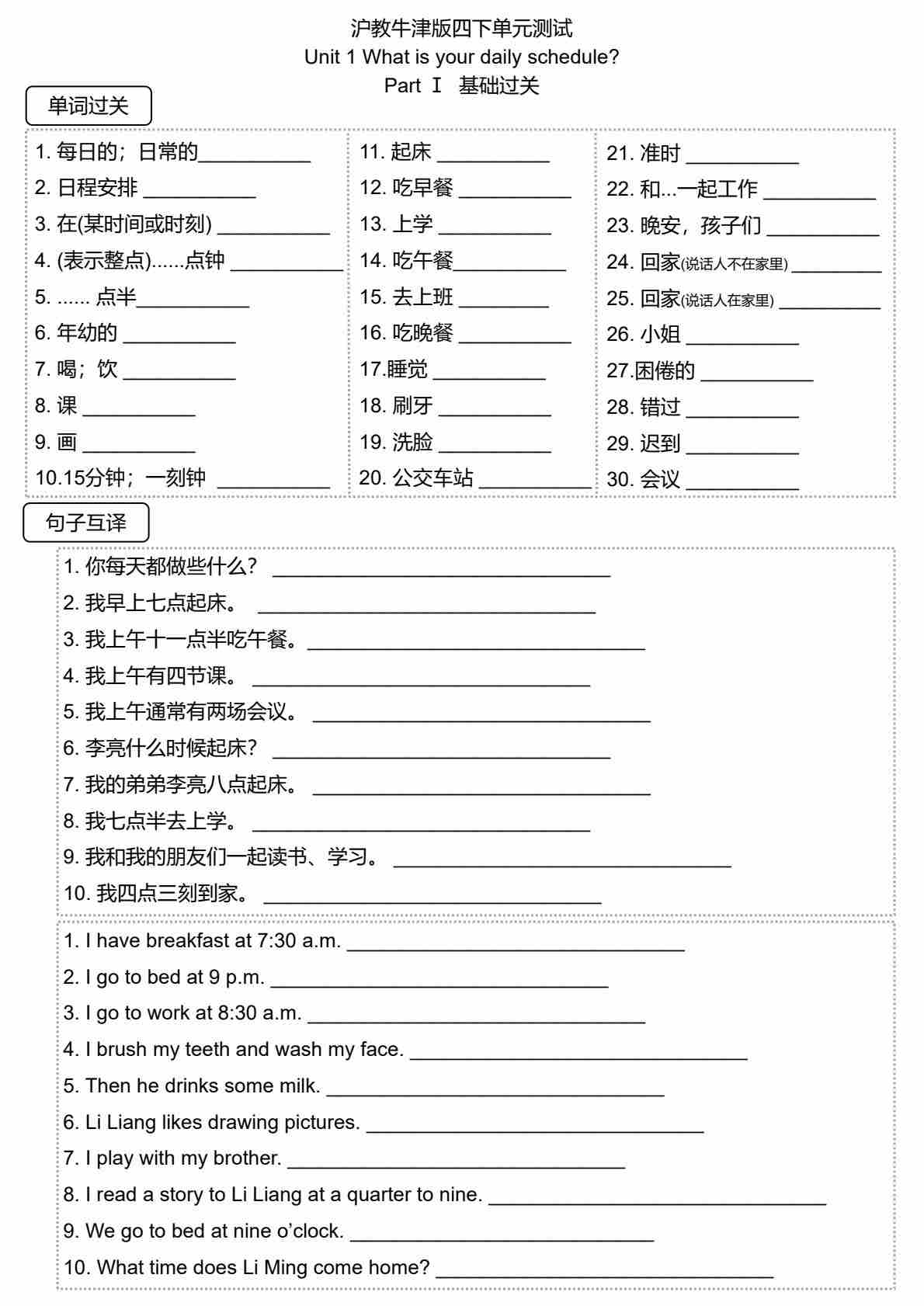 Unit 1 What is your daily schedule 答案