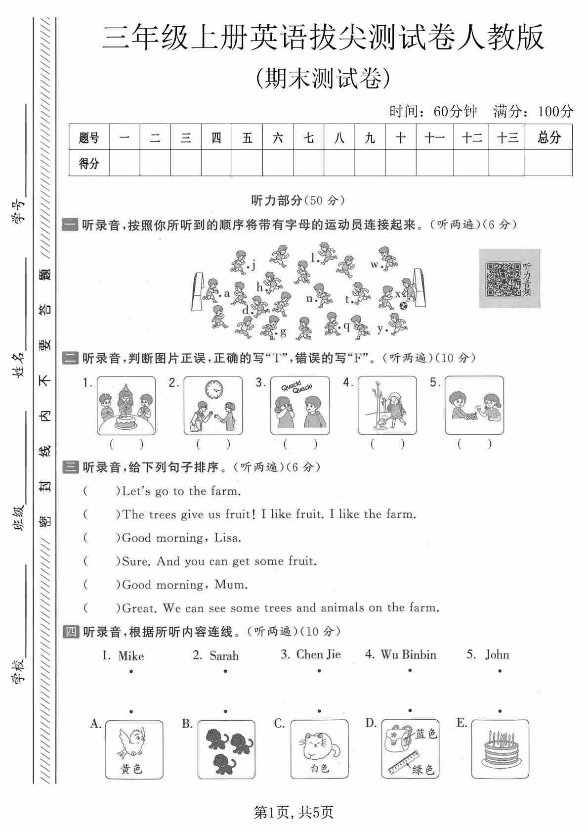 三上英语 期末拔尖测试卷《人教版PEP》