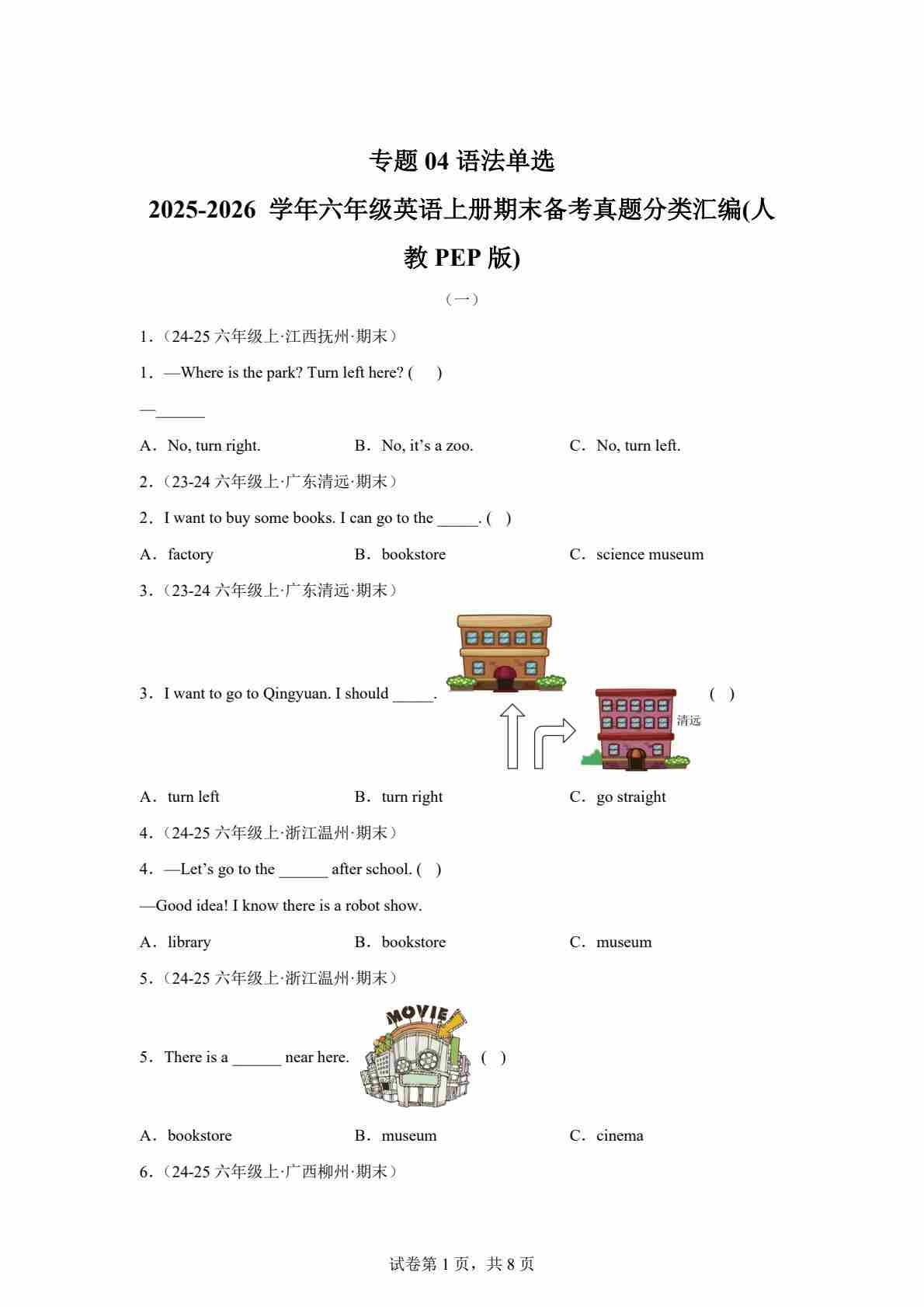 六上人教PEP版英语【期末真题汇编:专题04 语法单选】