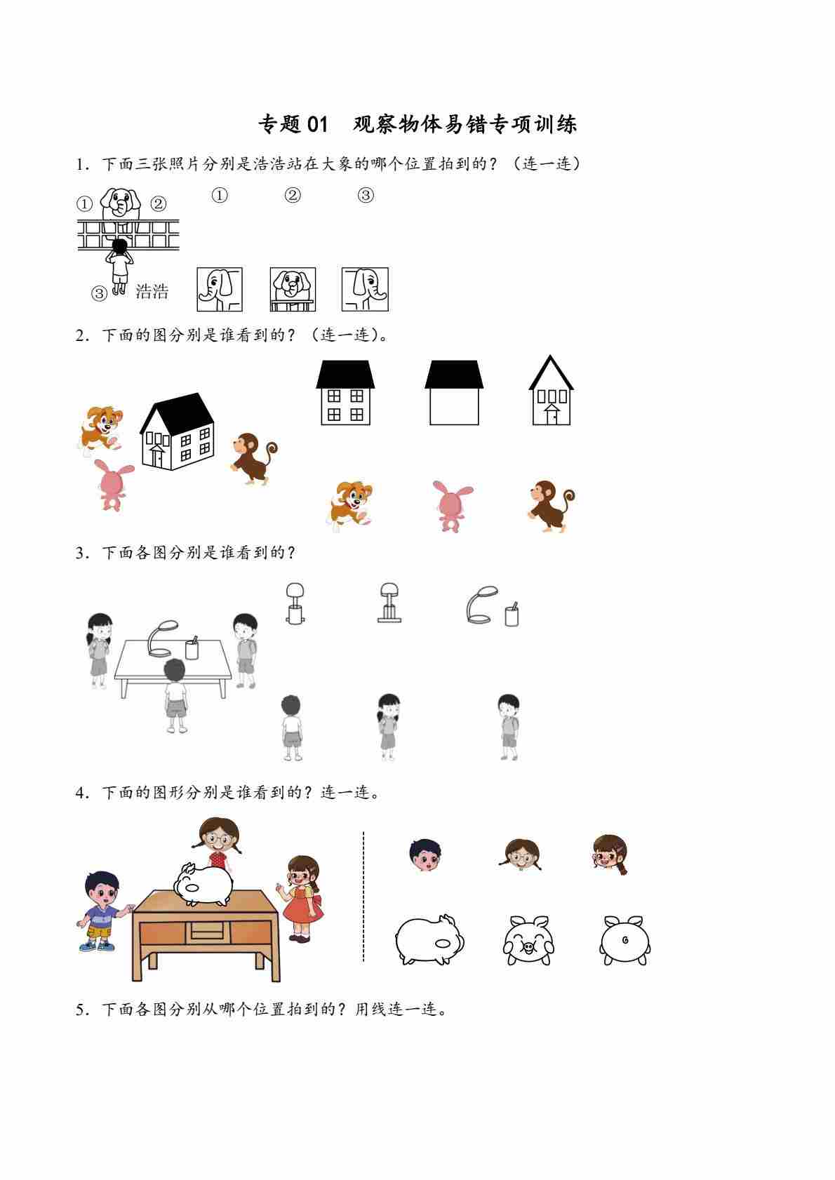 专题01 观察物体(易错专项训练)数学人教版三年级上册(原卷版)