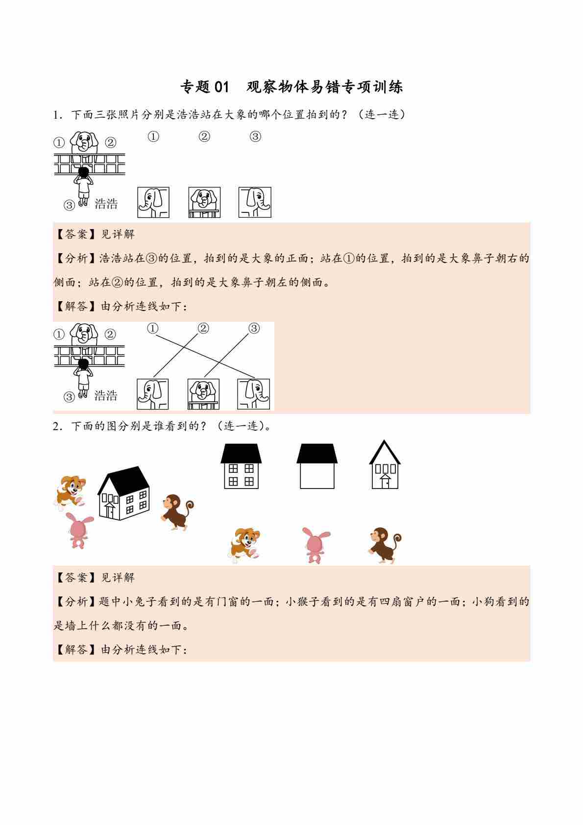 专题01 观察物体(易错专项训练)数学人教版三年级上册(解析版)
