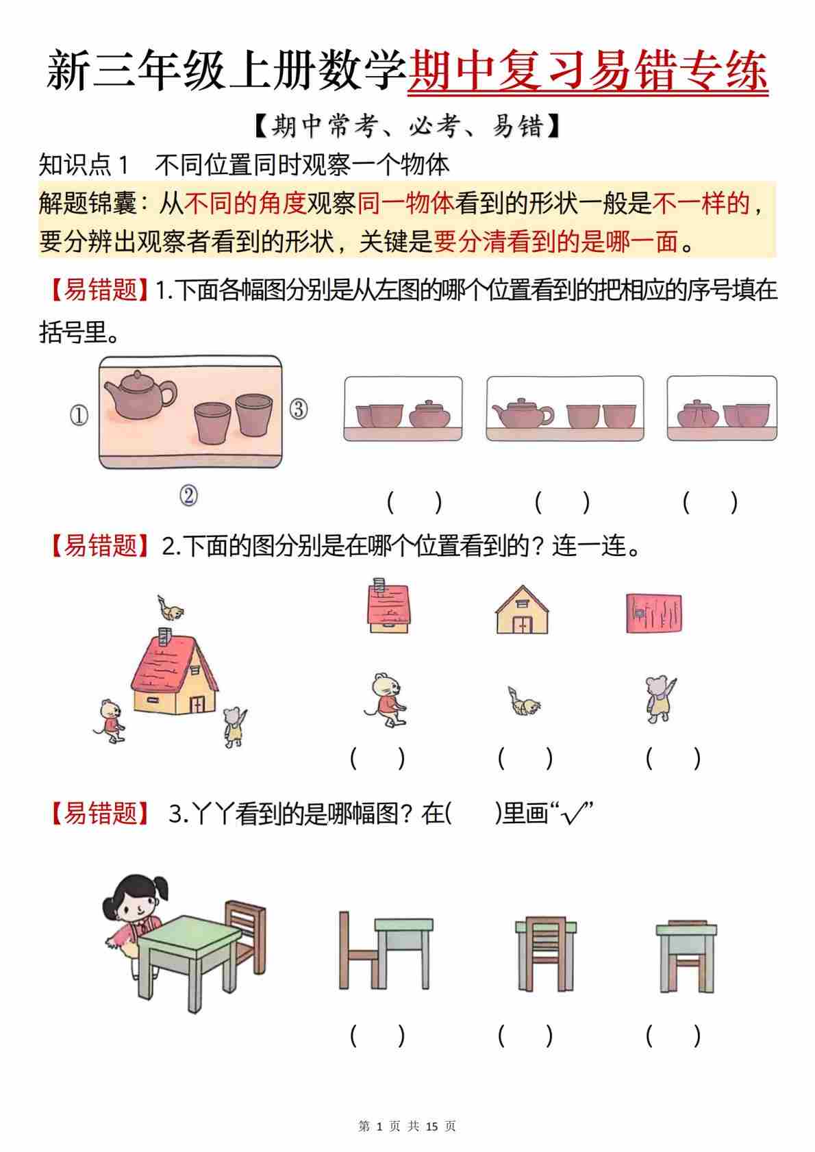 新三上数学期中复习易错专项练习(期中常考必考易错题)含答案15页