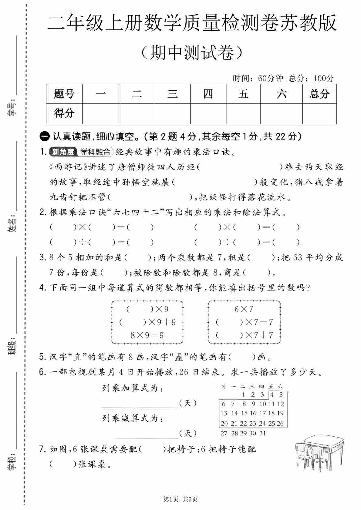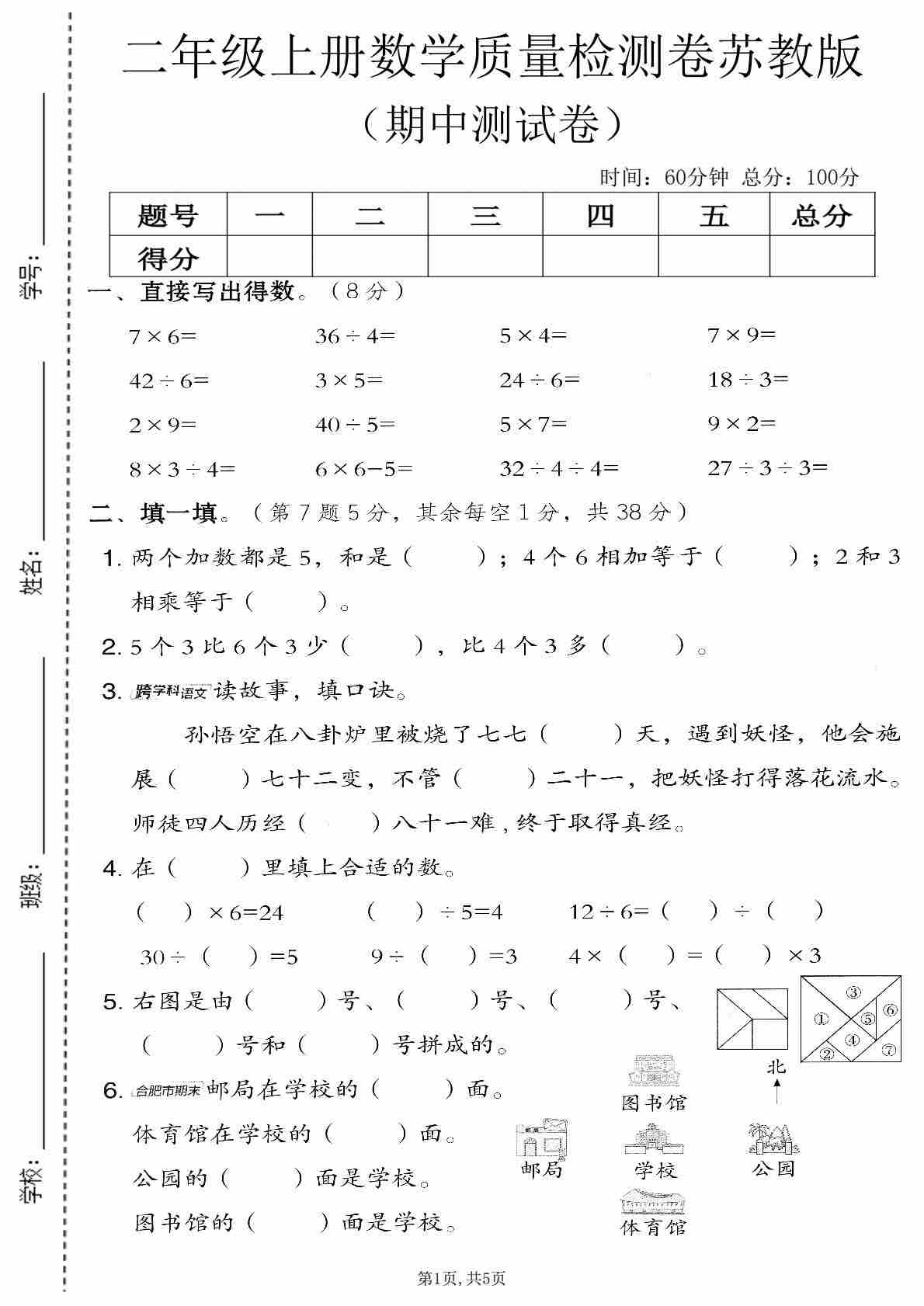 二年级(上)苏教版数学期中质量检测卷1