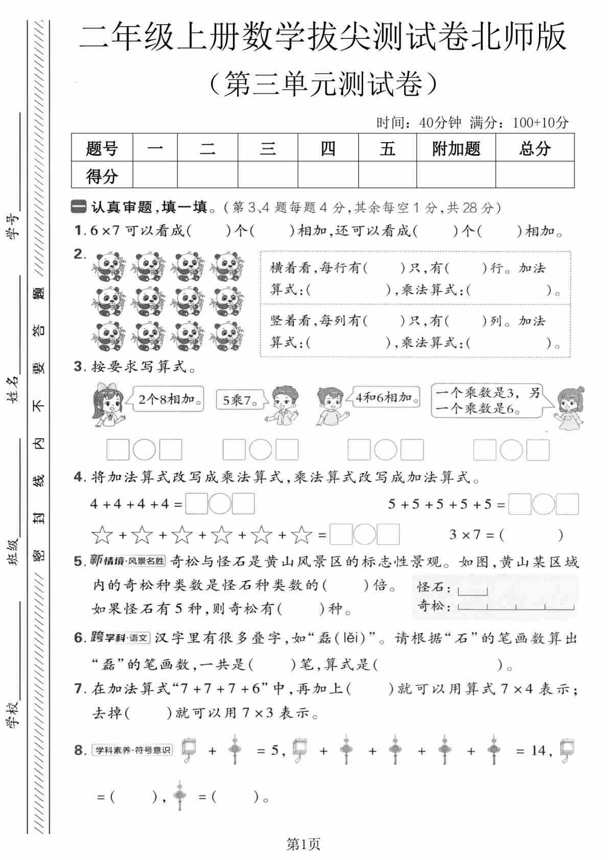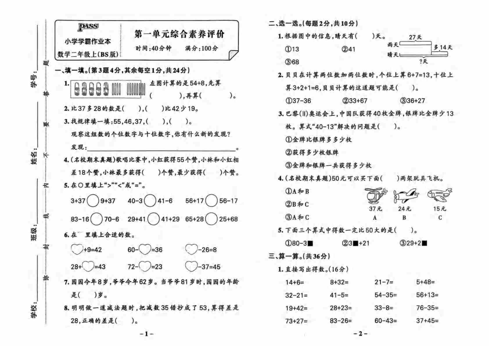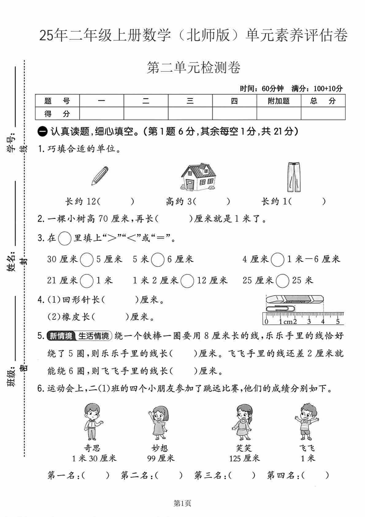 25秋二上北师大版数学【《小学学霸作业本-试卷》】