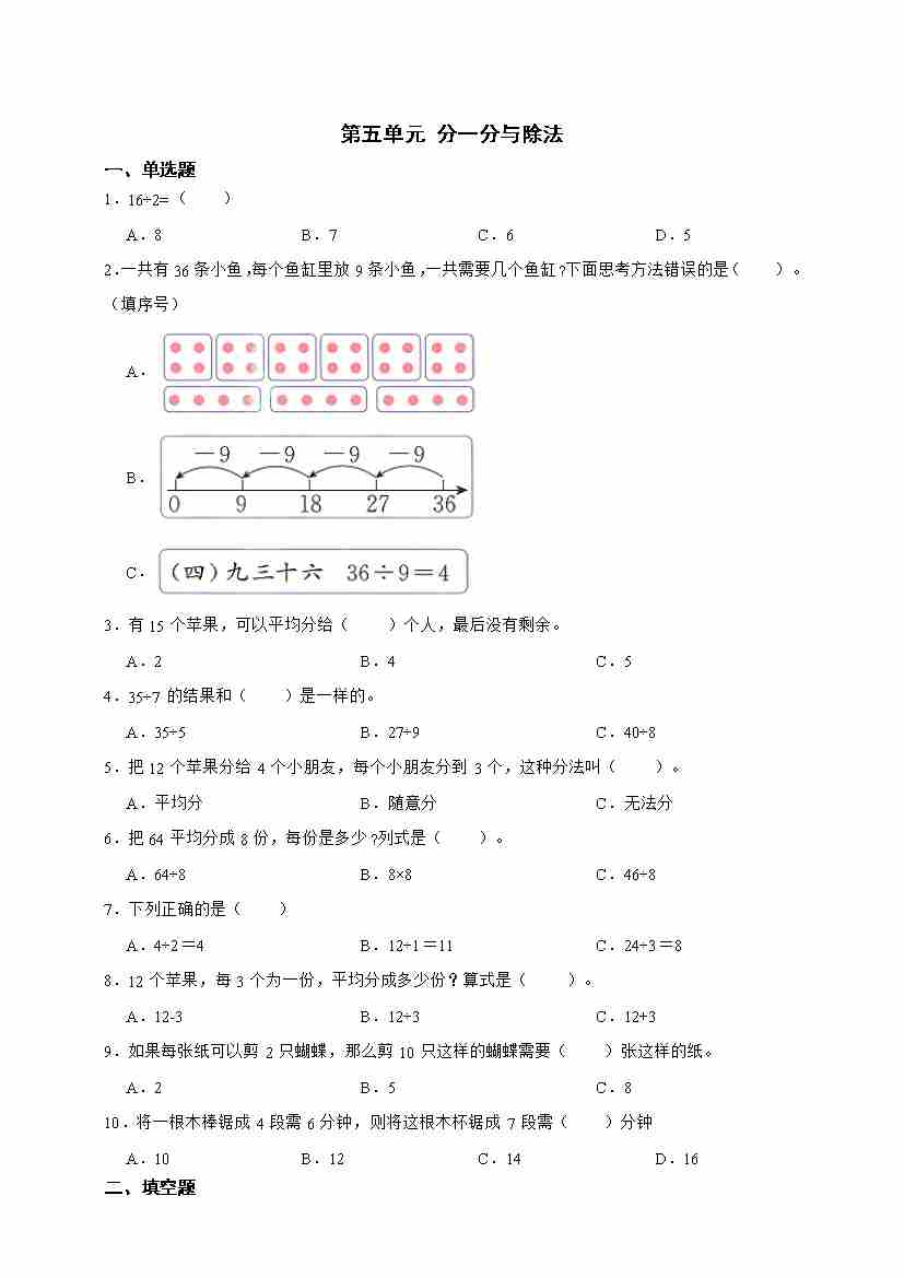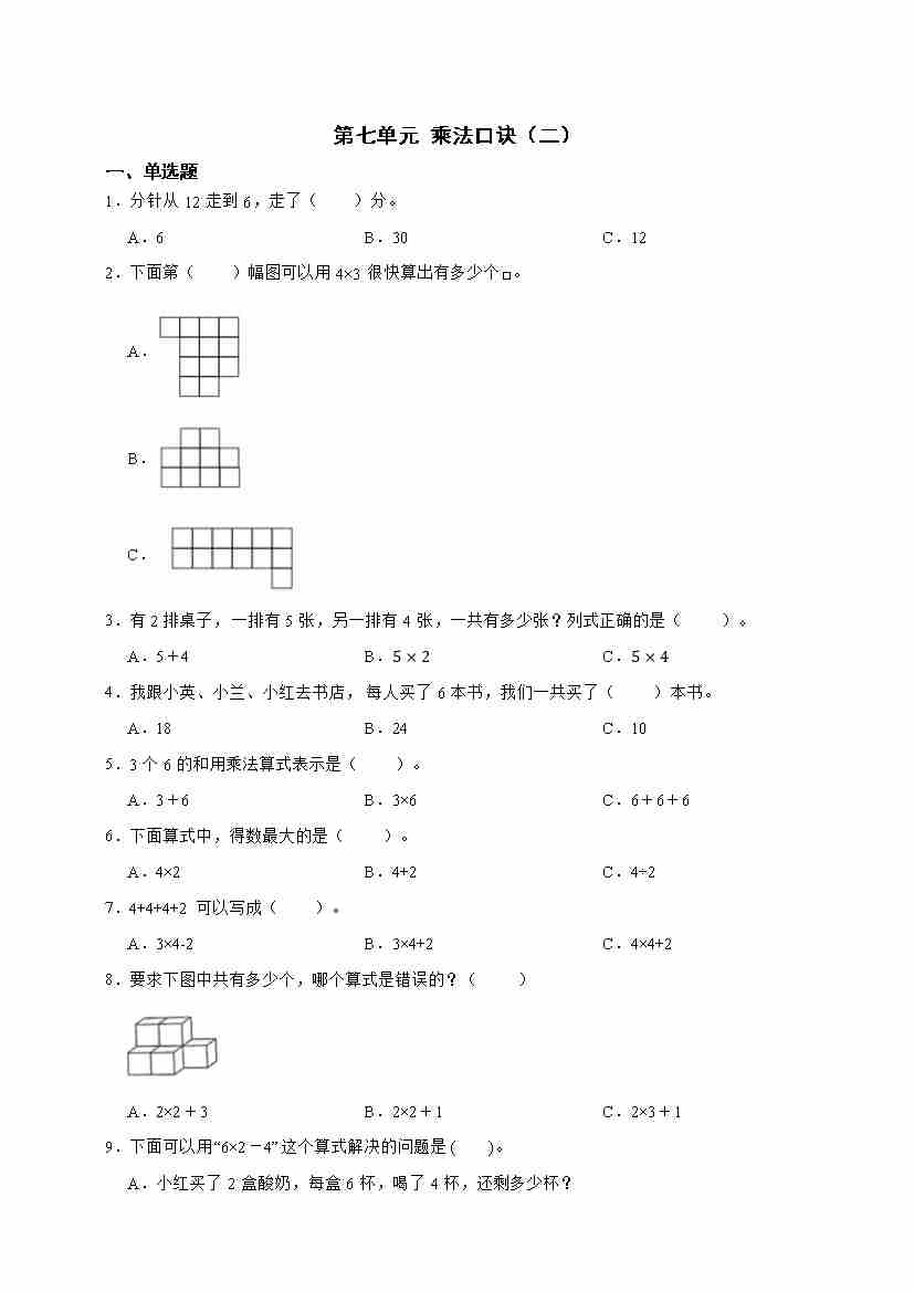 二(上)2025秋北师大版数学【第六单元测试卷】