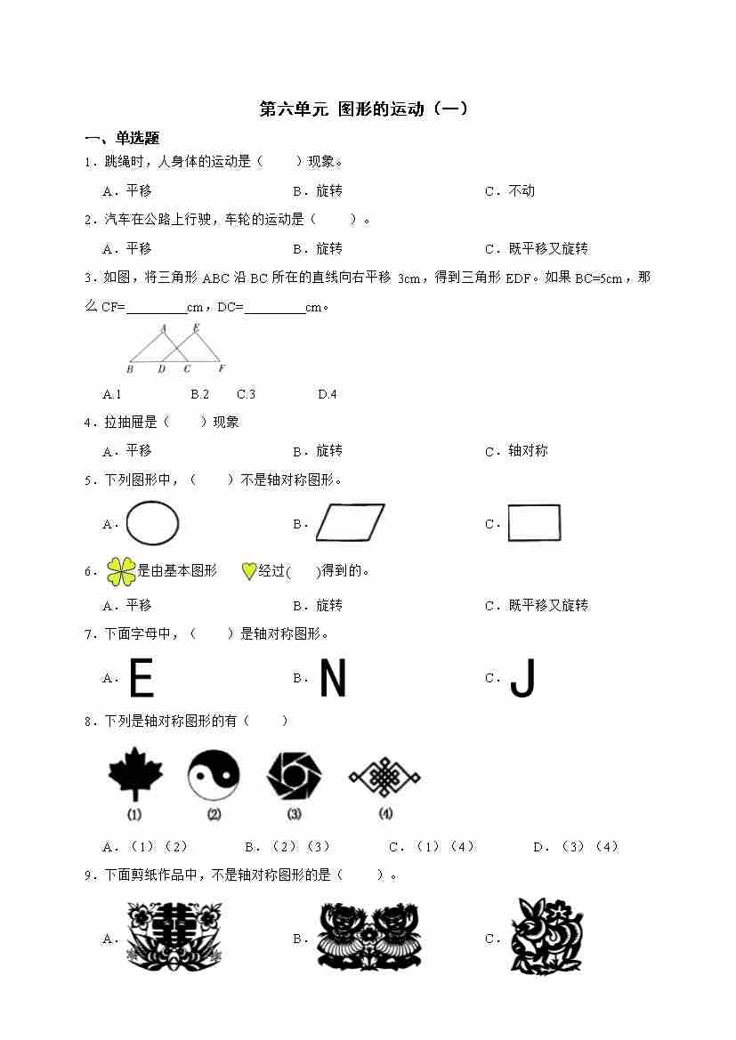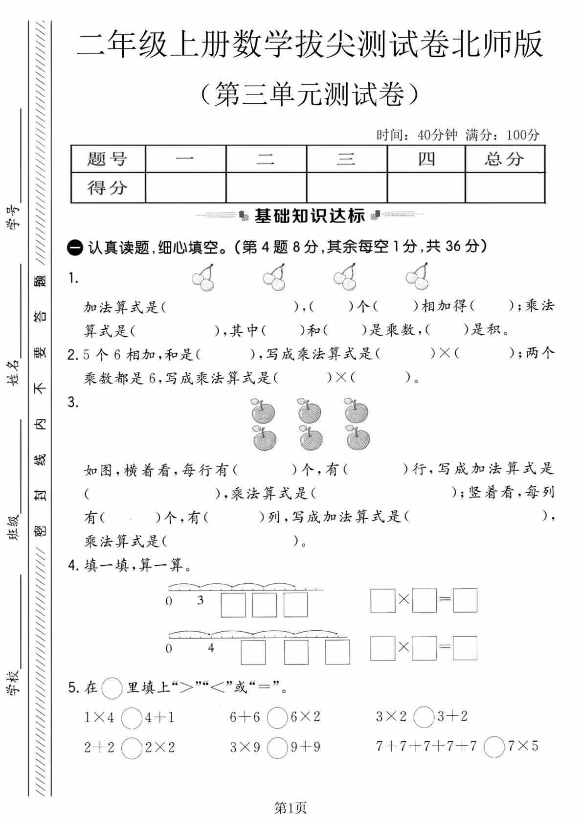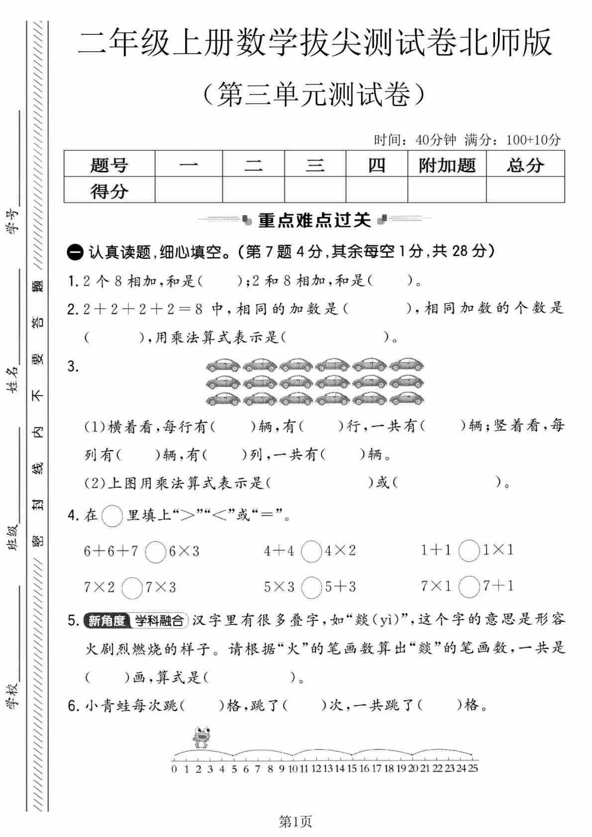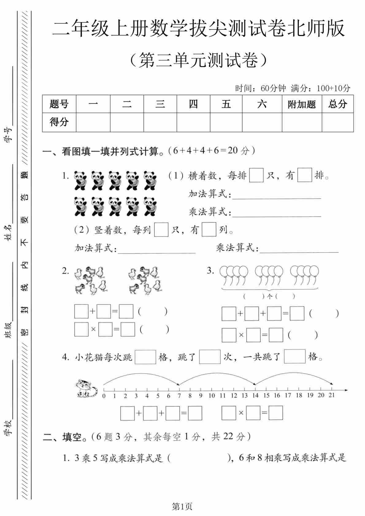 二(上)2025秋北师大版数学【第三单元测试卷1】