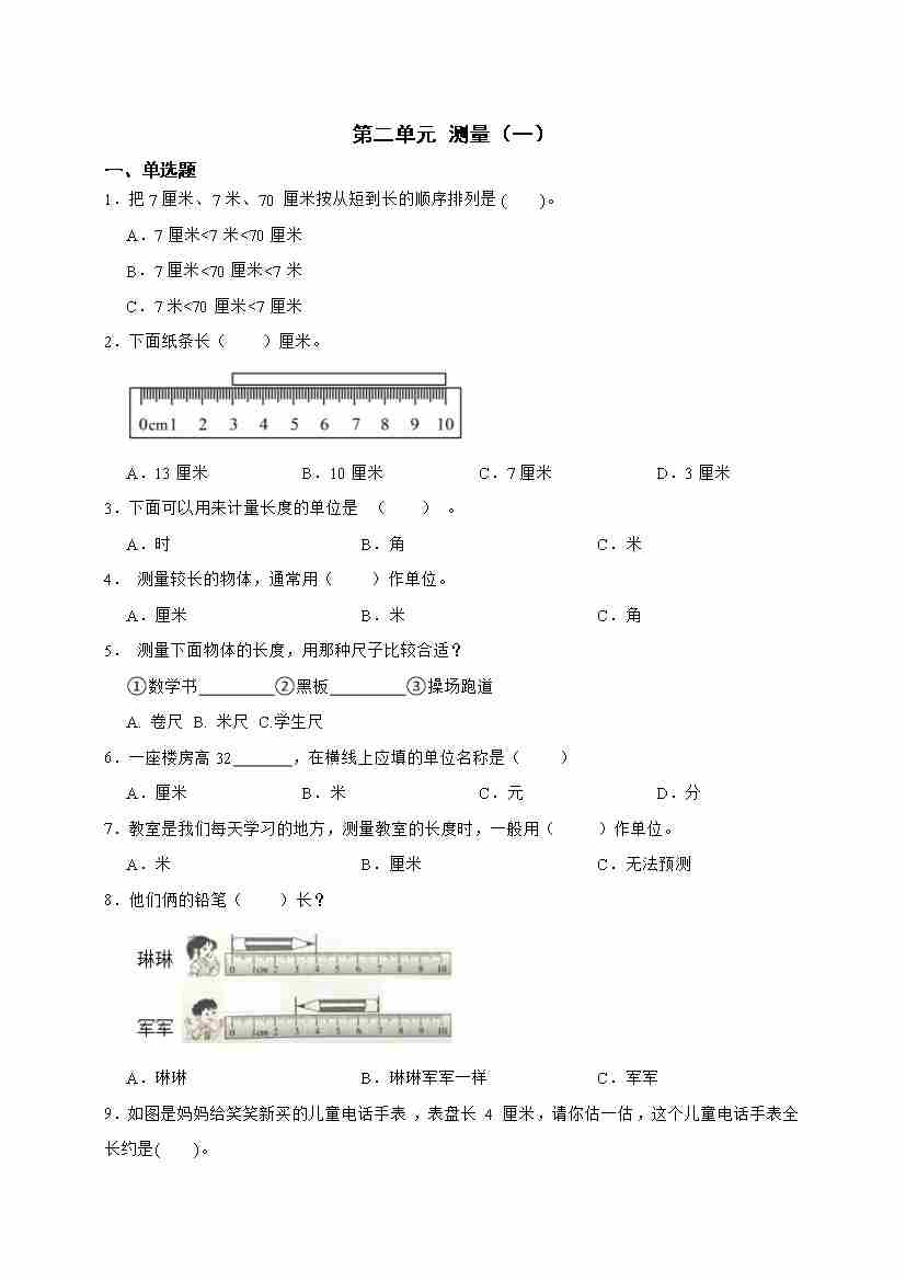 二(上)2025秋北师大版数学【第二单元测试卷】
