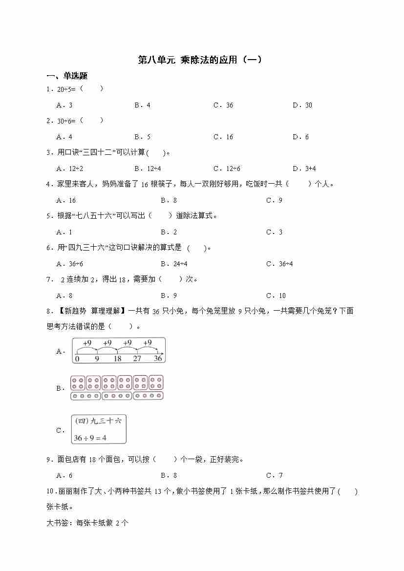 二(上)2025秋北师大版数学【第八单元测试卷】