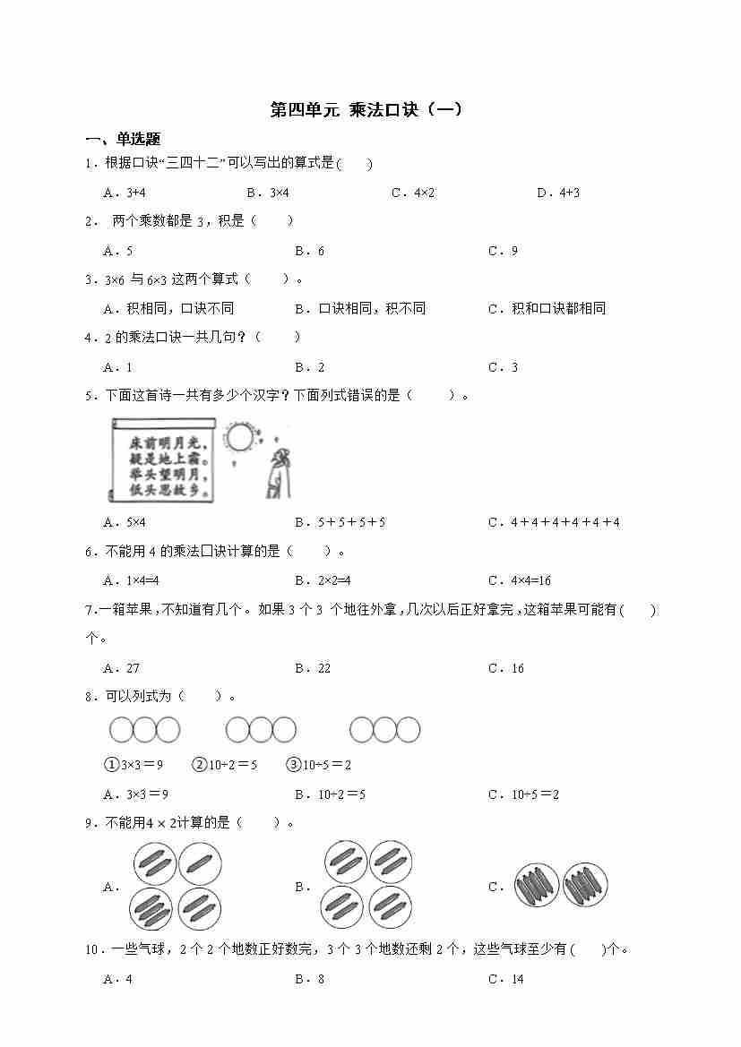 二(上)2025秋北师大版数学【第四单元测试卷】