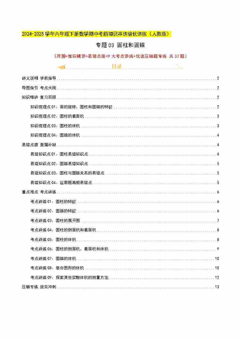 专题03 圆柱和圆锥(单元讲义)-(人教版)学生版