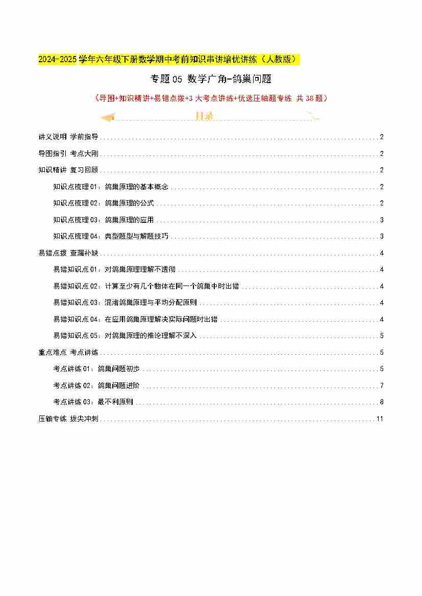 专题05 数学广角-鸽巢问题(单元讲义)-(人教版)学生版