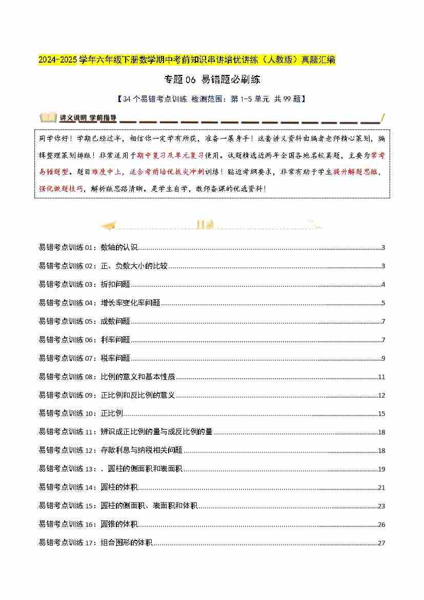 专题06 期中考前易错题必刷练(复习讲义)-(人教版)学生版