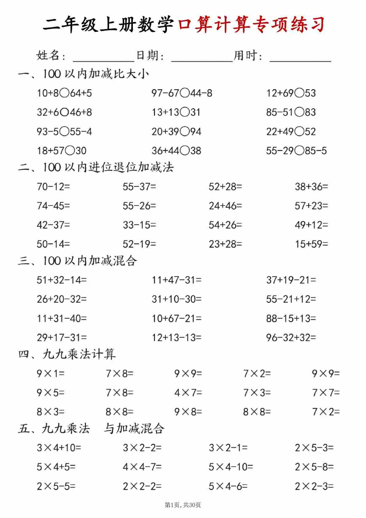二(上)重点思维题+数学思维专项训练(十八类题型10页)