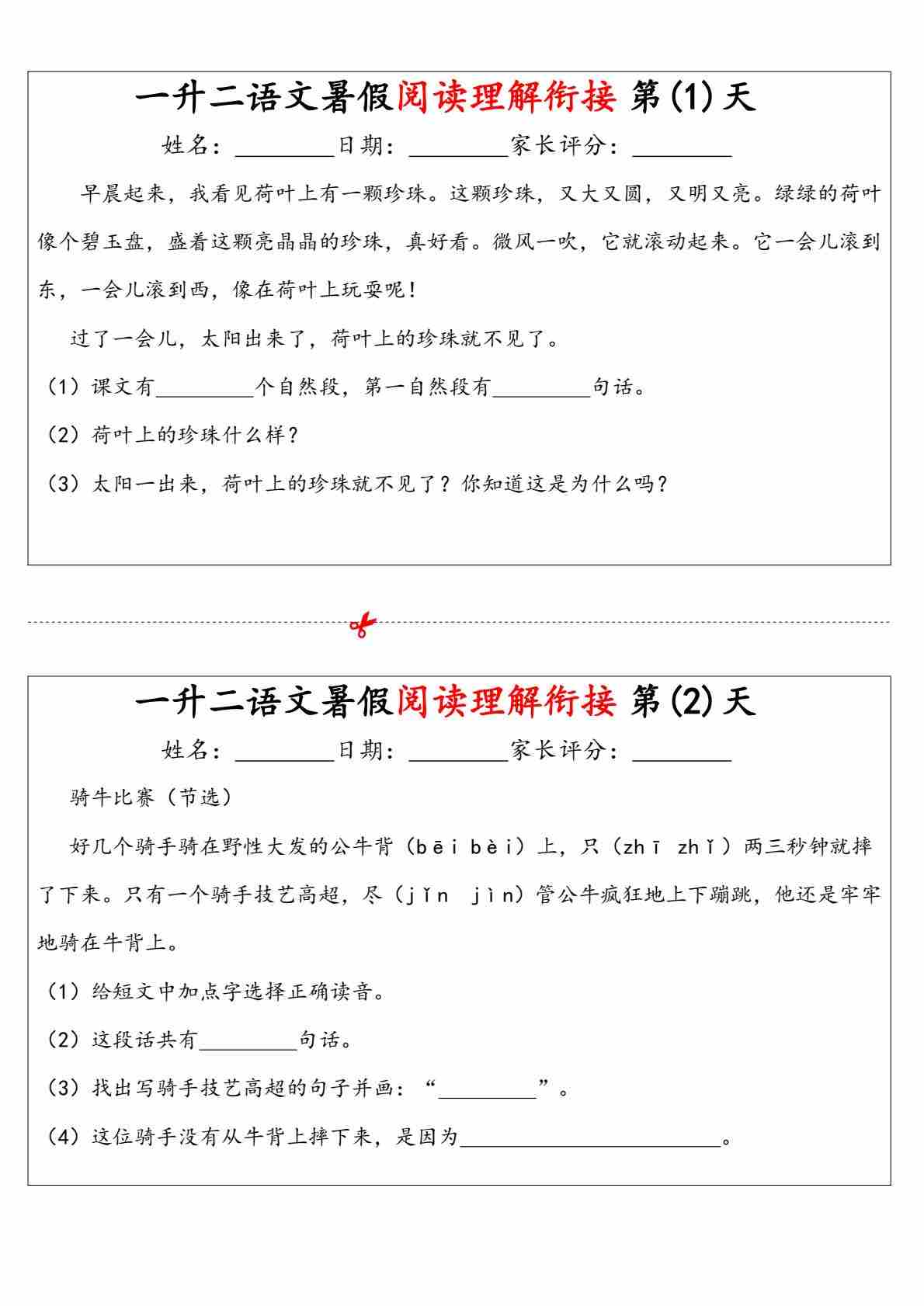 一升二阅读理解每日一练